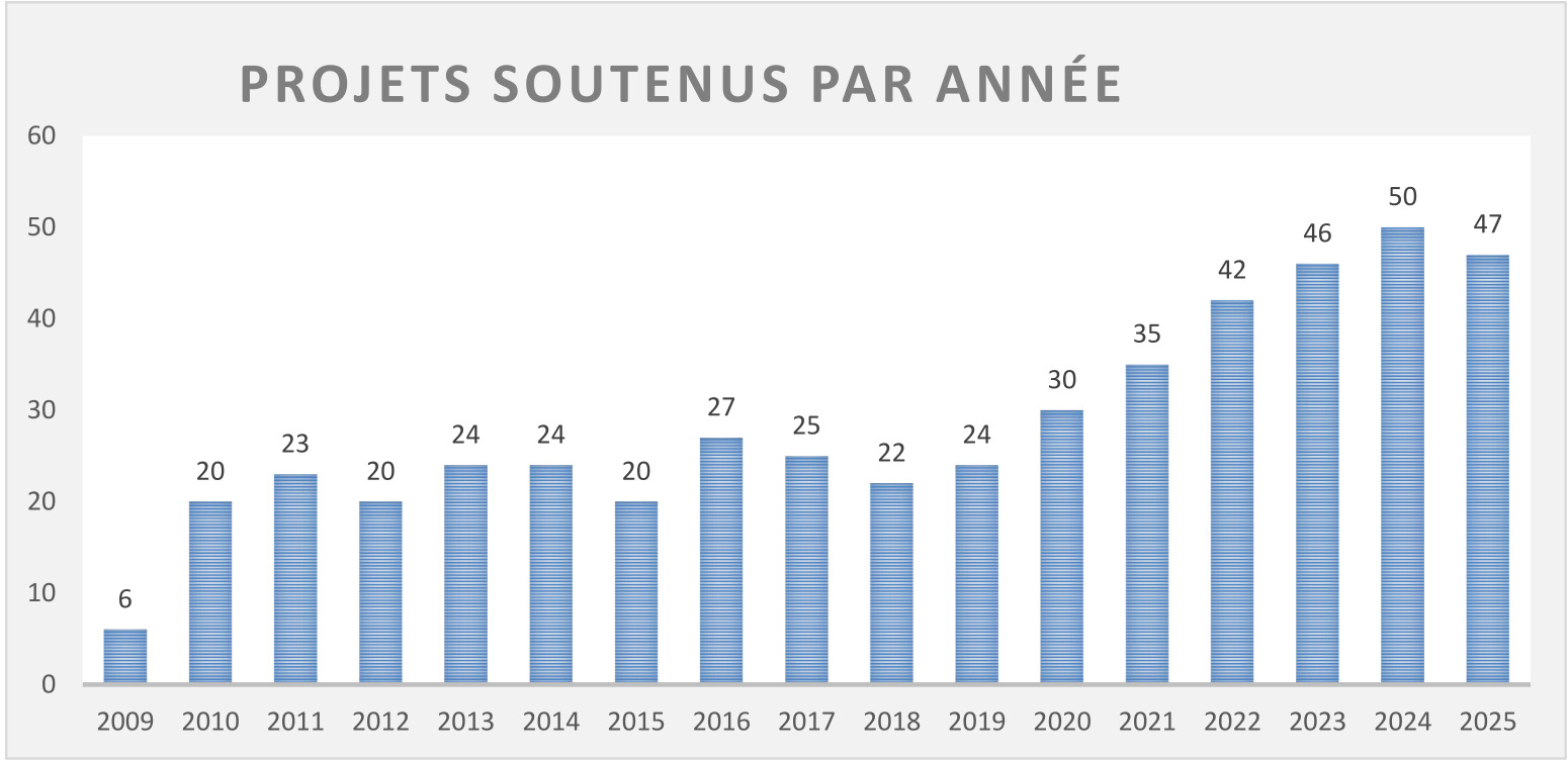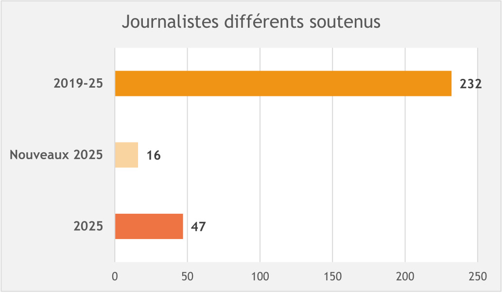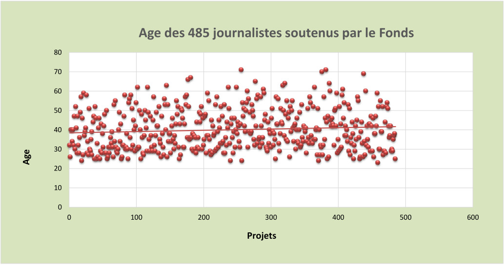 Nous partageons donc ces données qui permettent de cibler les bénéficiaires (âge, genre, statut…), d’évaluer le type de travail (enquête, reportage) et la qualité du travail (prix obtenus), mais aussi de jauger la quantité de projets soutenus chaque année.